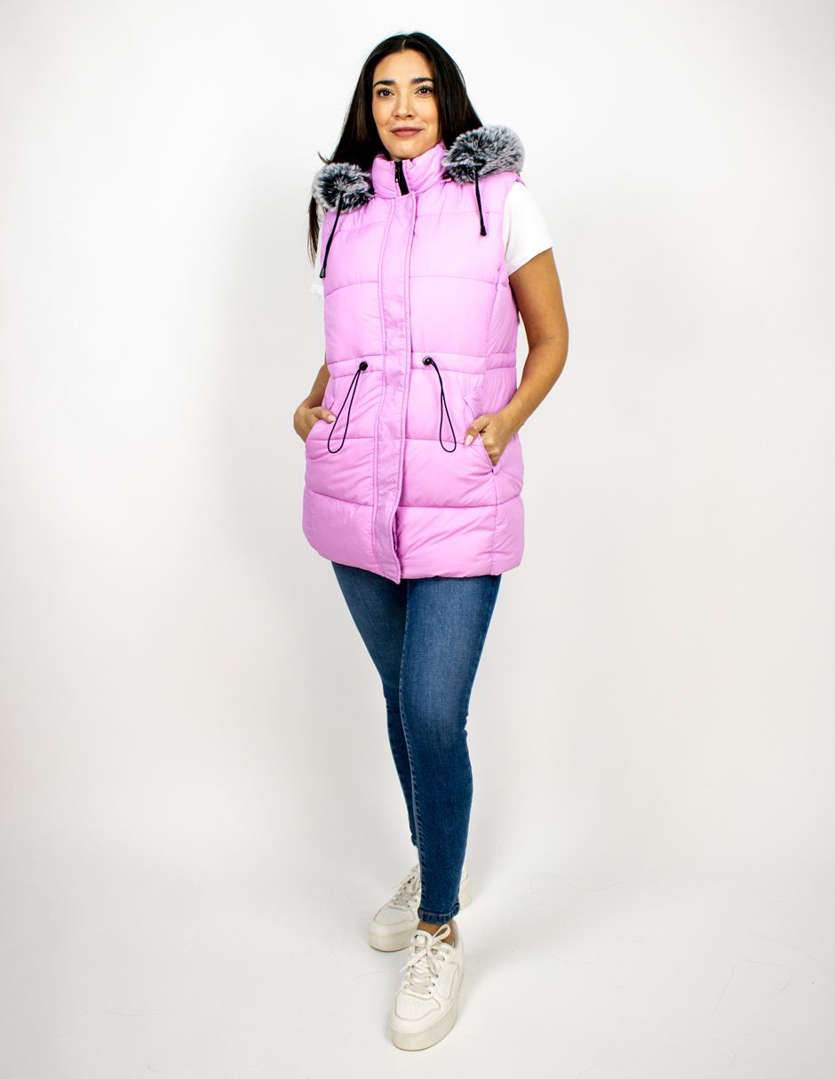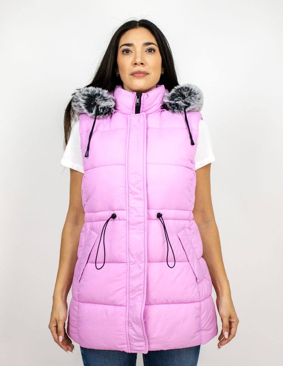 Chaleco Largo Capucha Con Peluche Furor Regular Poliéster