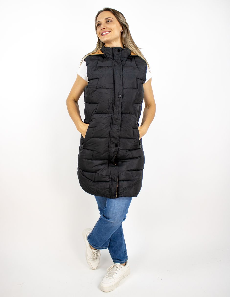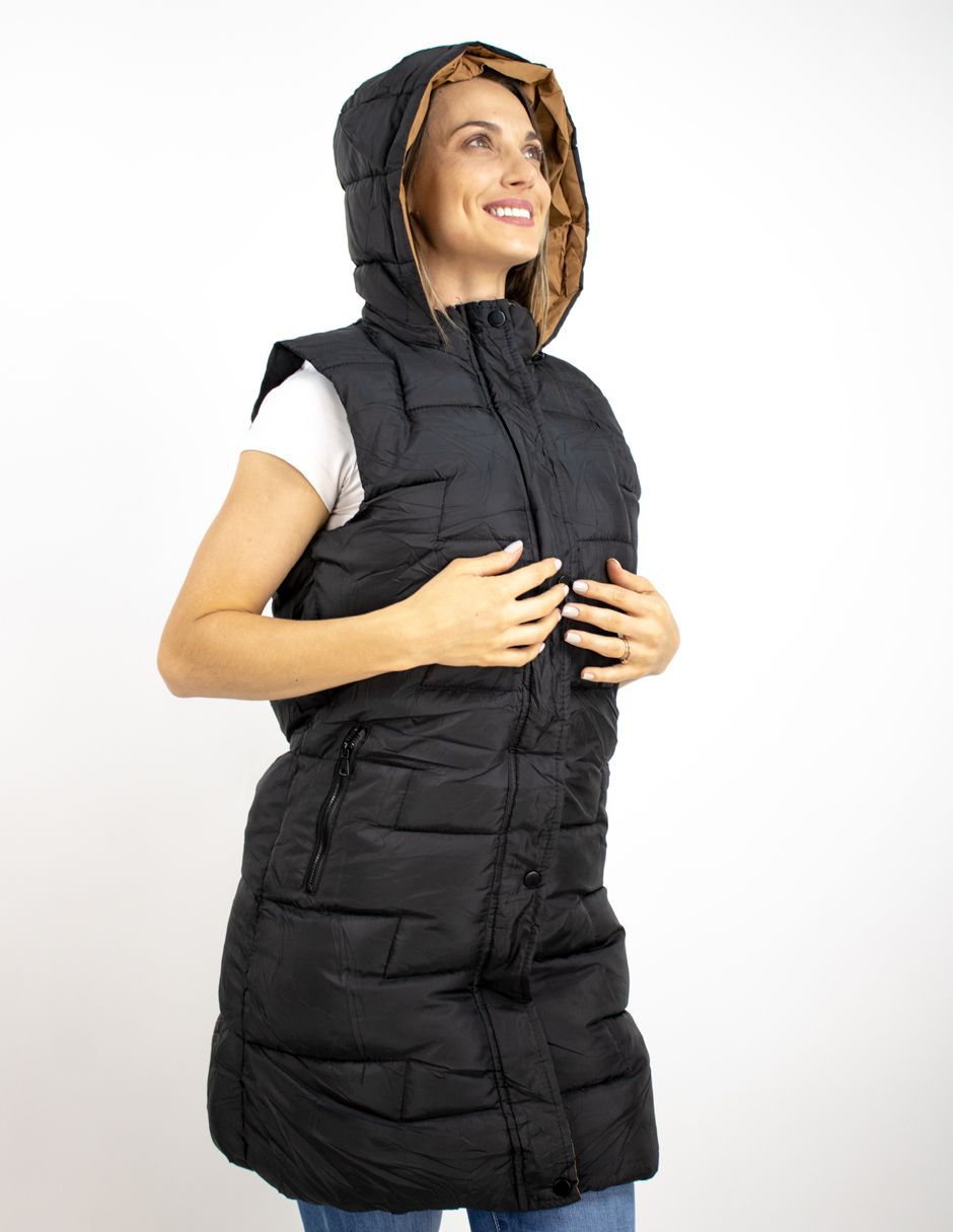 EXCLUSIVO BOUTIQUES Chaleco Furor Puffer Largo Hoodie Poliamida Negro/Camello