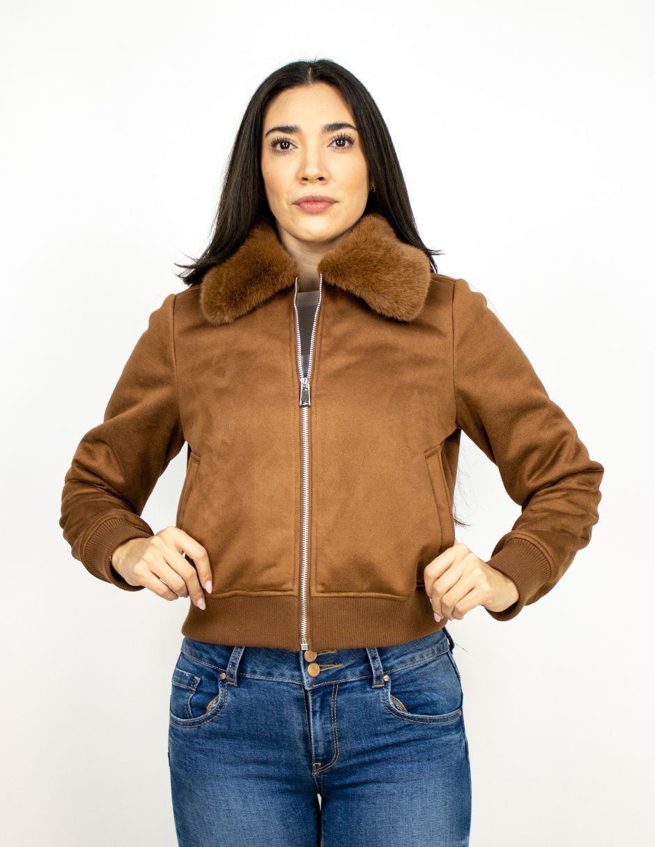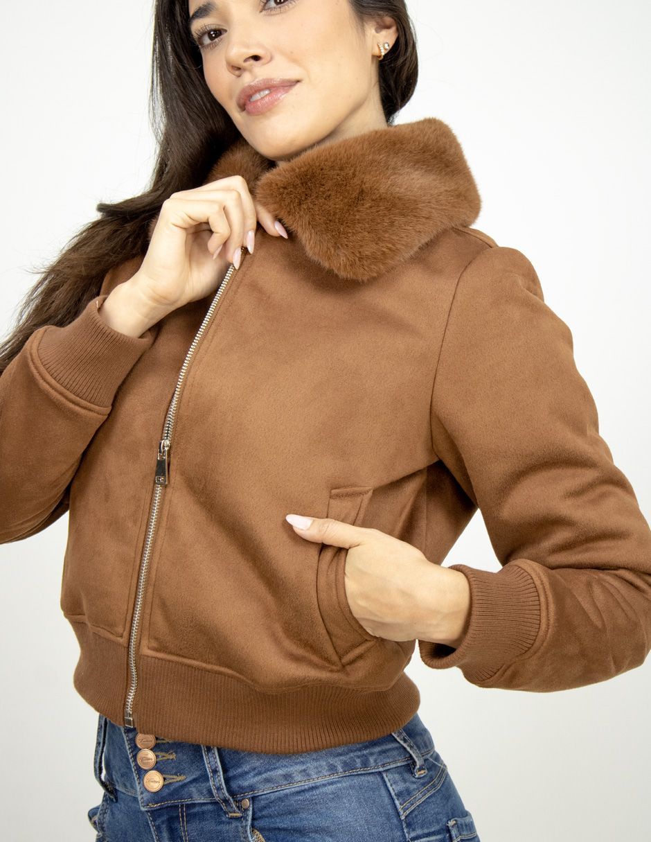 Chamarra Furor Aviador Crop Con Cuello De Pelo Sintético Regular Fit Poliéster