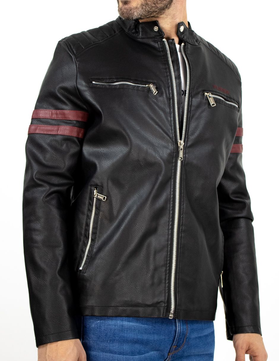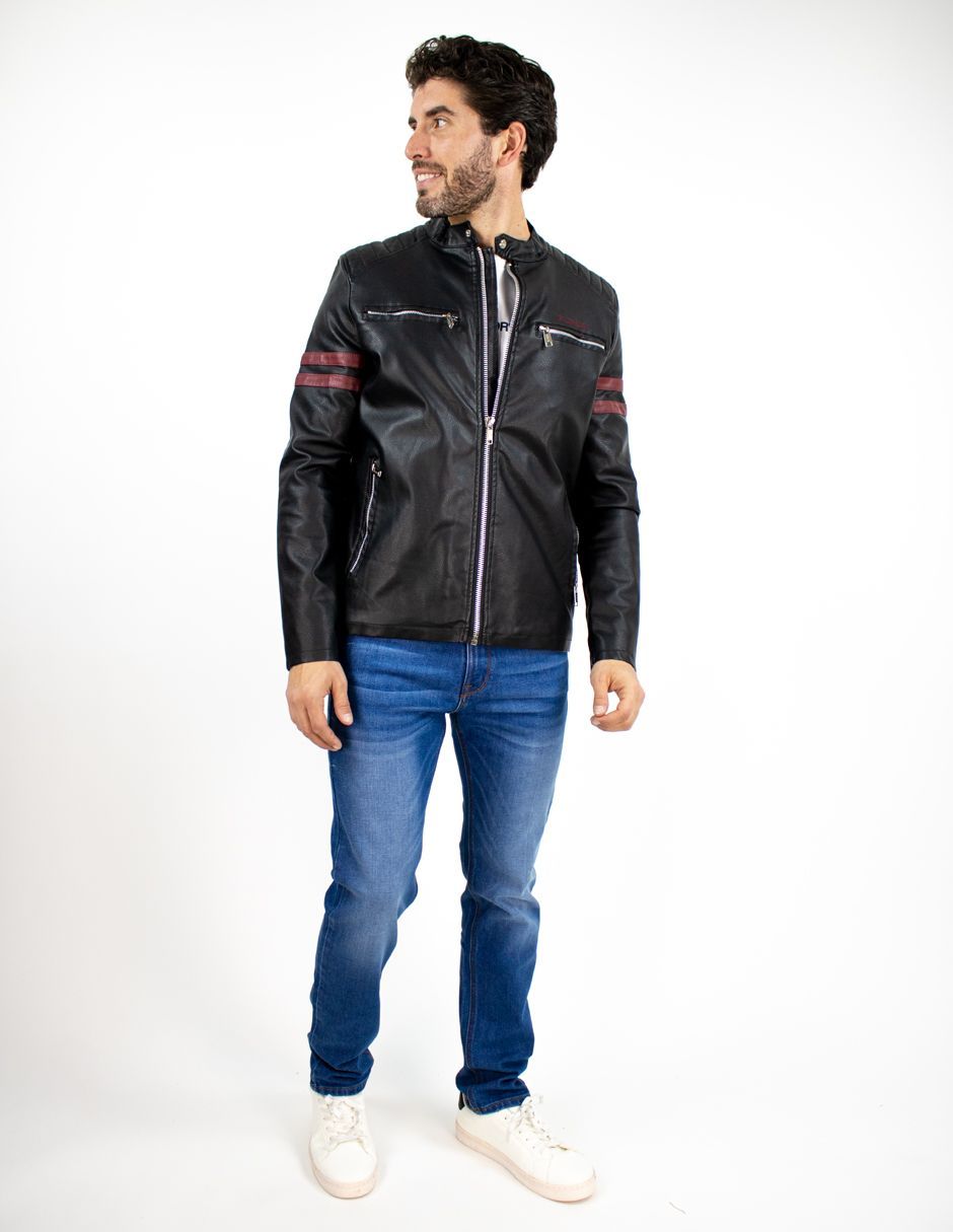 <p>Chamarra Biker Con Zippers Frontal, Bolsos Y Puños Poliuretano</p>