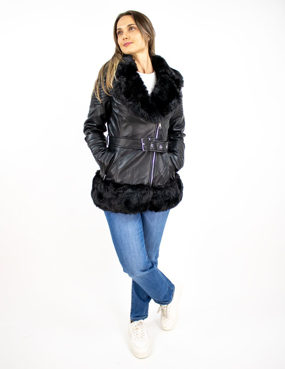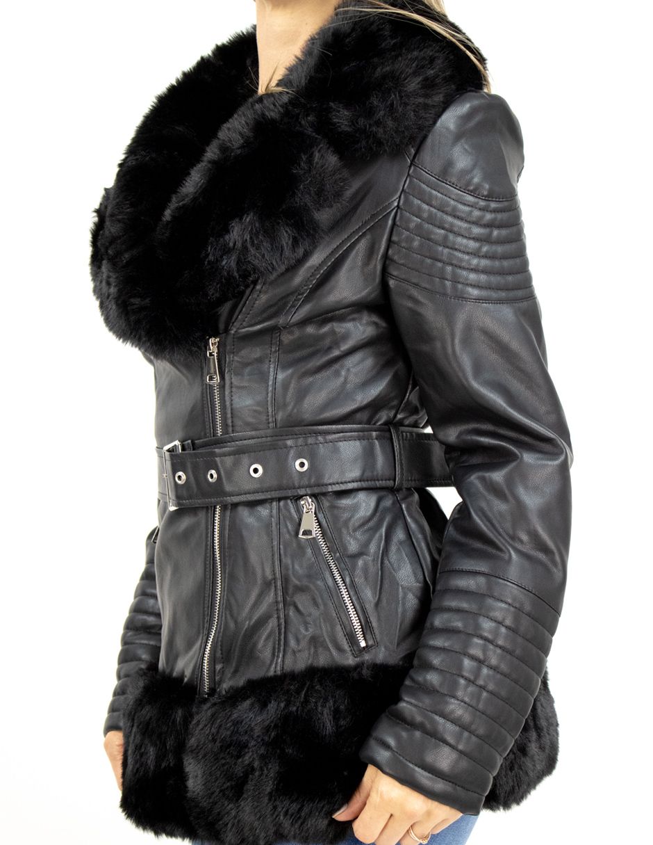 Chamarra Biker Con Peluche y Cinto