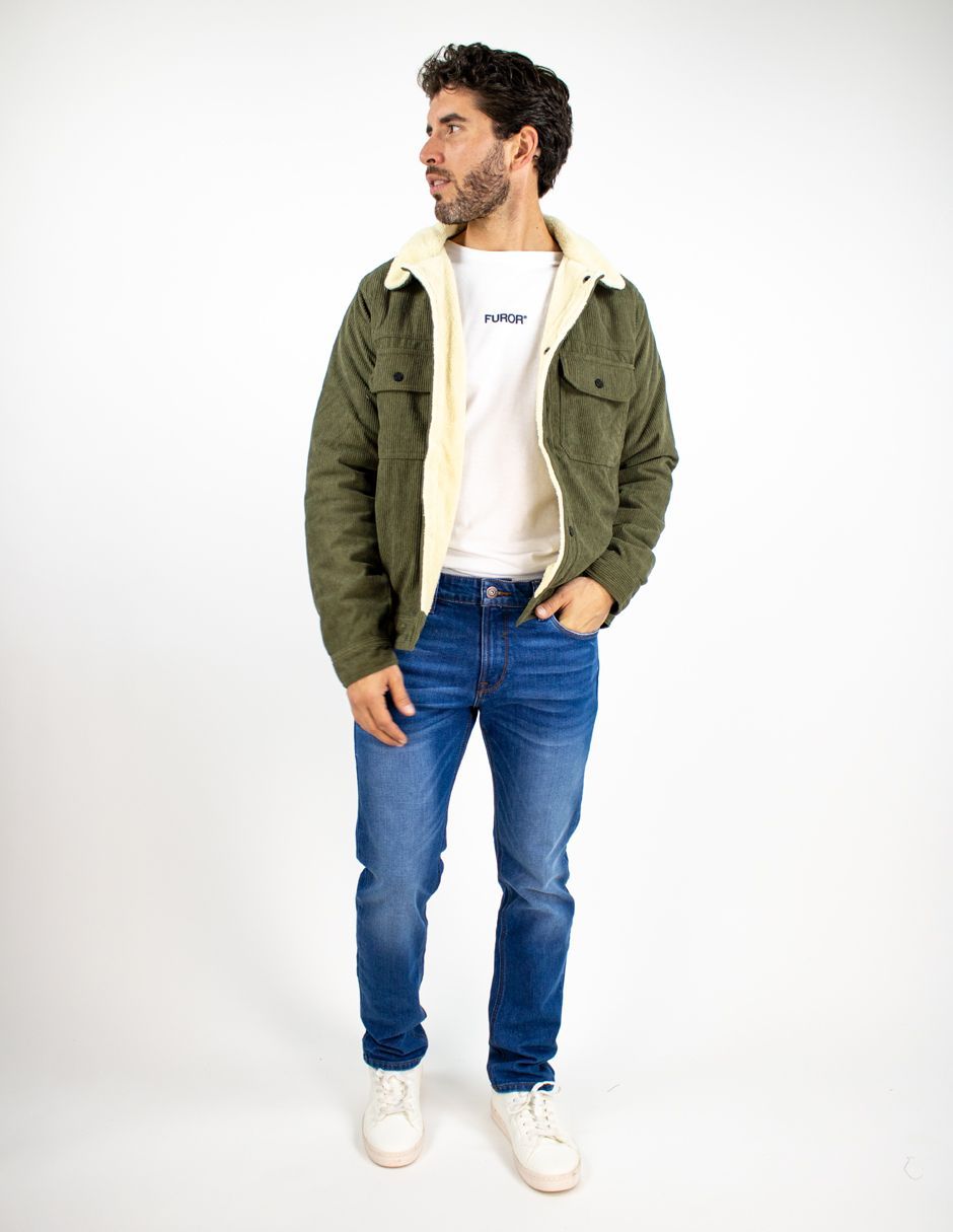 EXCLUSIVO BOUTIQUES T10601474 Chamarra Furor Con Cuello Botones Forro Regular Pana Militar