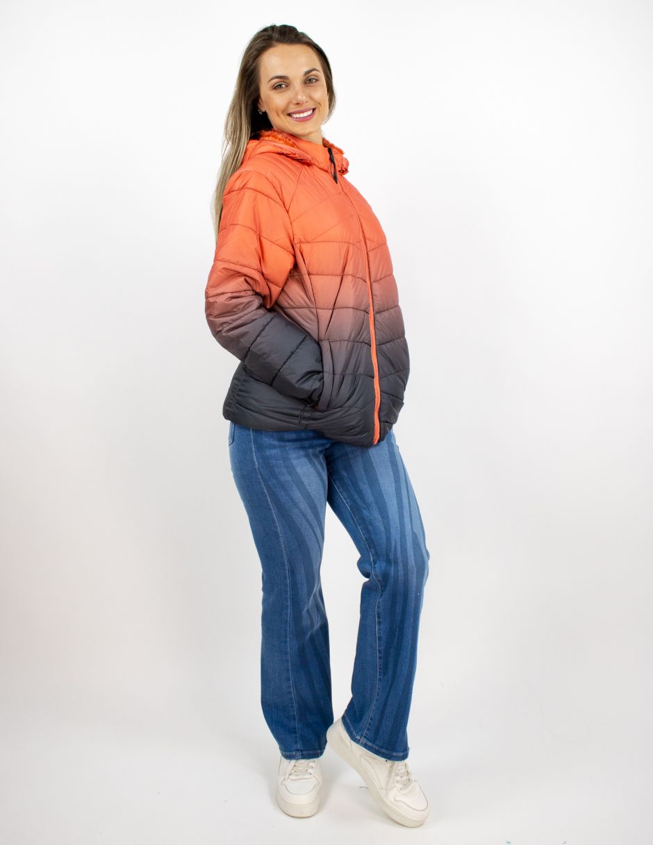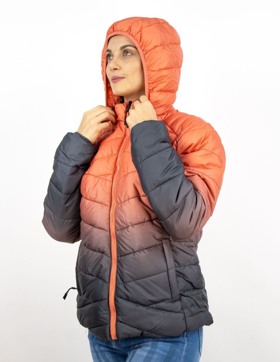 EXCLUSIVO SUBURBIA BHI2504158 Chamarra Furor Puffer Larga Con Capucha Regular Poliuretano Gris