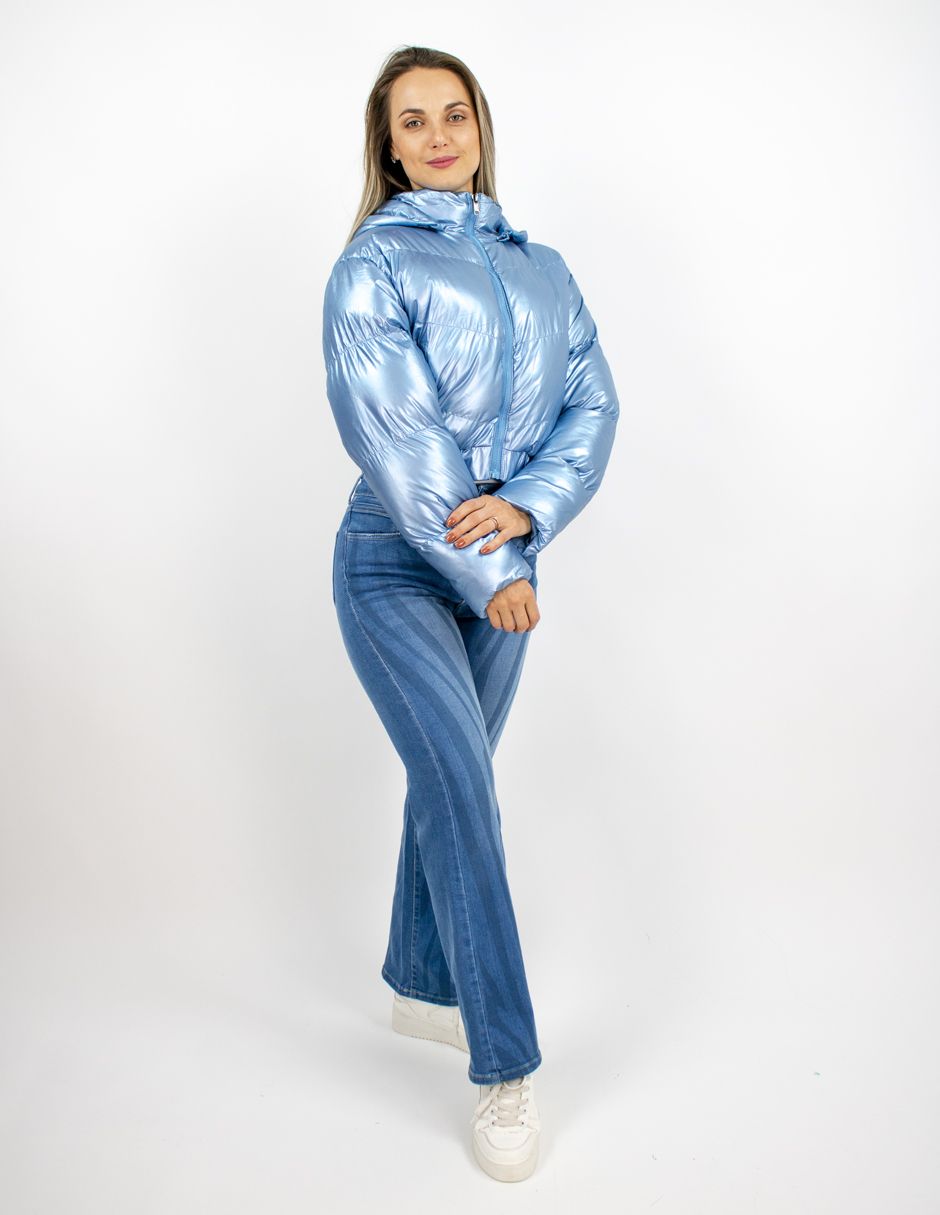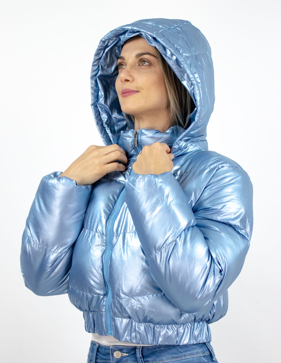EXCLUSIVO SUBURBIA 240692Chamarra Furor Crop Con Capucha Poliester Poliuretano Azul Metálico
