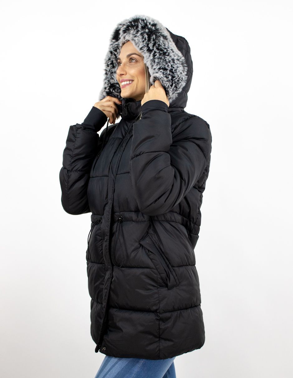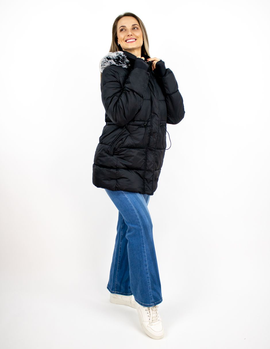 Chamarra Larga Capucha Con Peluche Furor Regular Poliamida