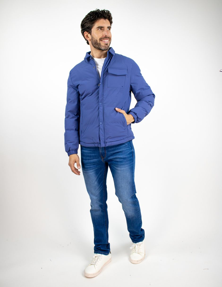 EXCLUSIVO BOUTIQUES T10601454 Chamarra Furor Puffer Cuello Broches Regular Fit Poliuretano Azul