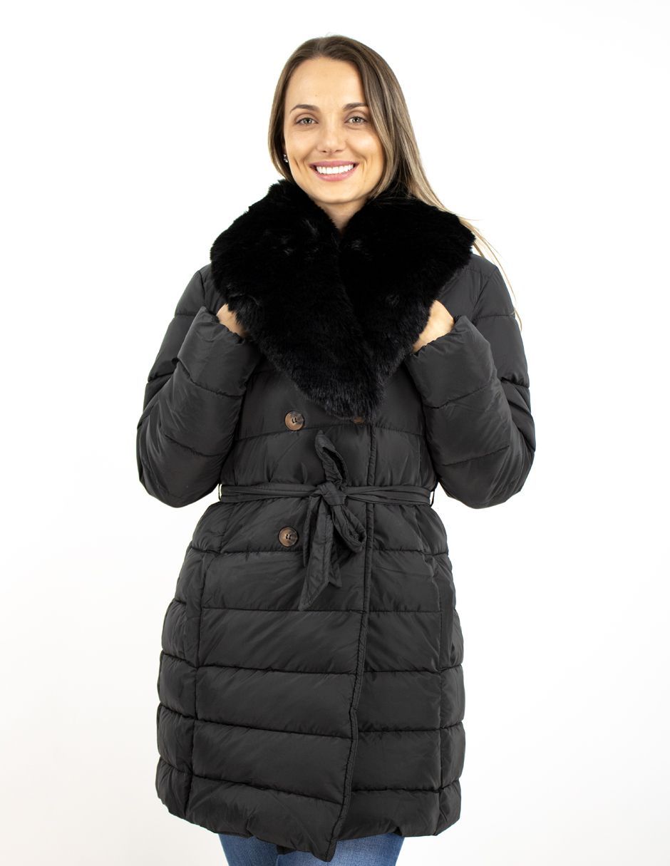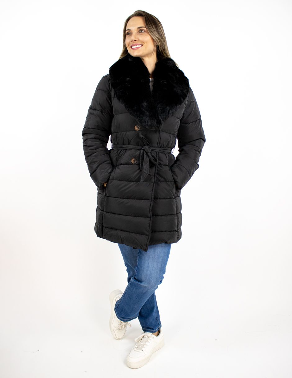 Chamarra Puffer Larga Con Botones Cuello Con Peluche Y Cinto