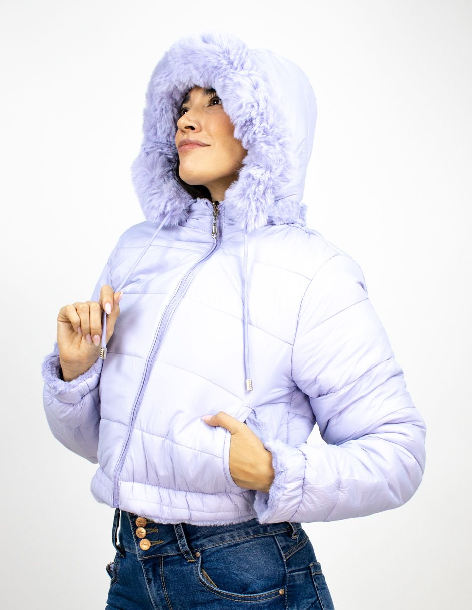 EXCLUSIVO SUBURBIA MADDIE Chamarra Furor Tejido Fluffy Reversible Con Capucha Poliéster Poliamida Lila