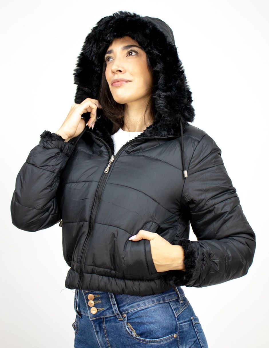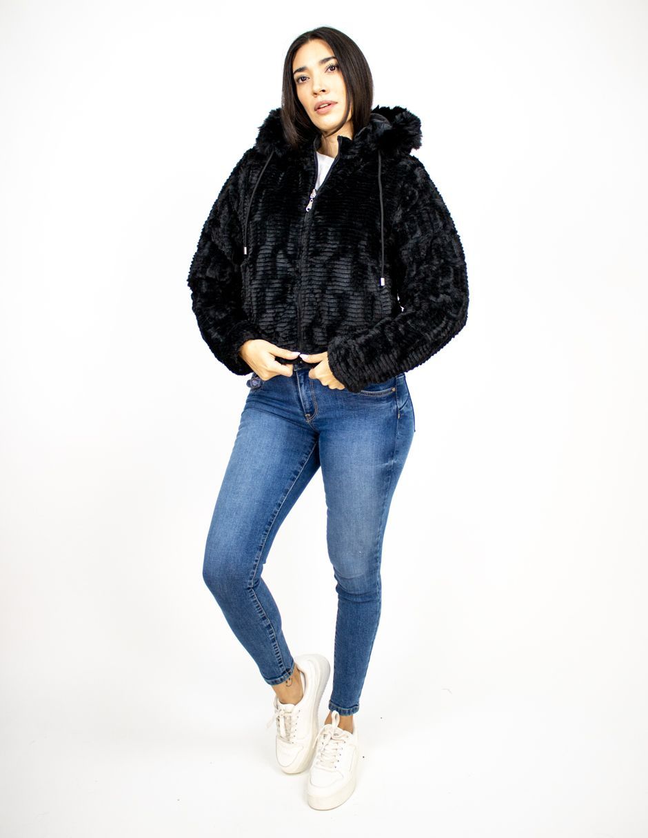 EXCLUSIVO SUBURBIA MADDIE Chamarra Furor Tejido Fluffy Reversible Con Capucha Poliéster Poliamida Negro