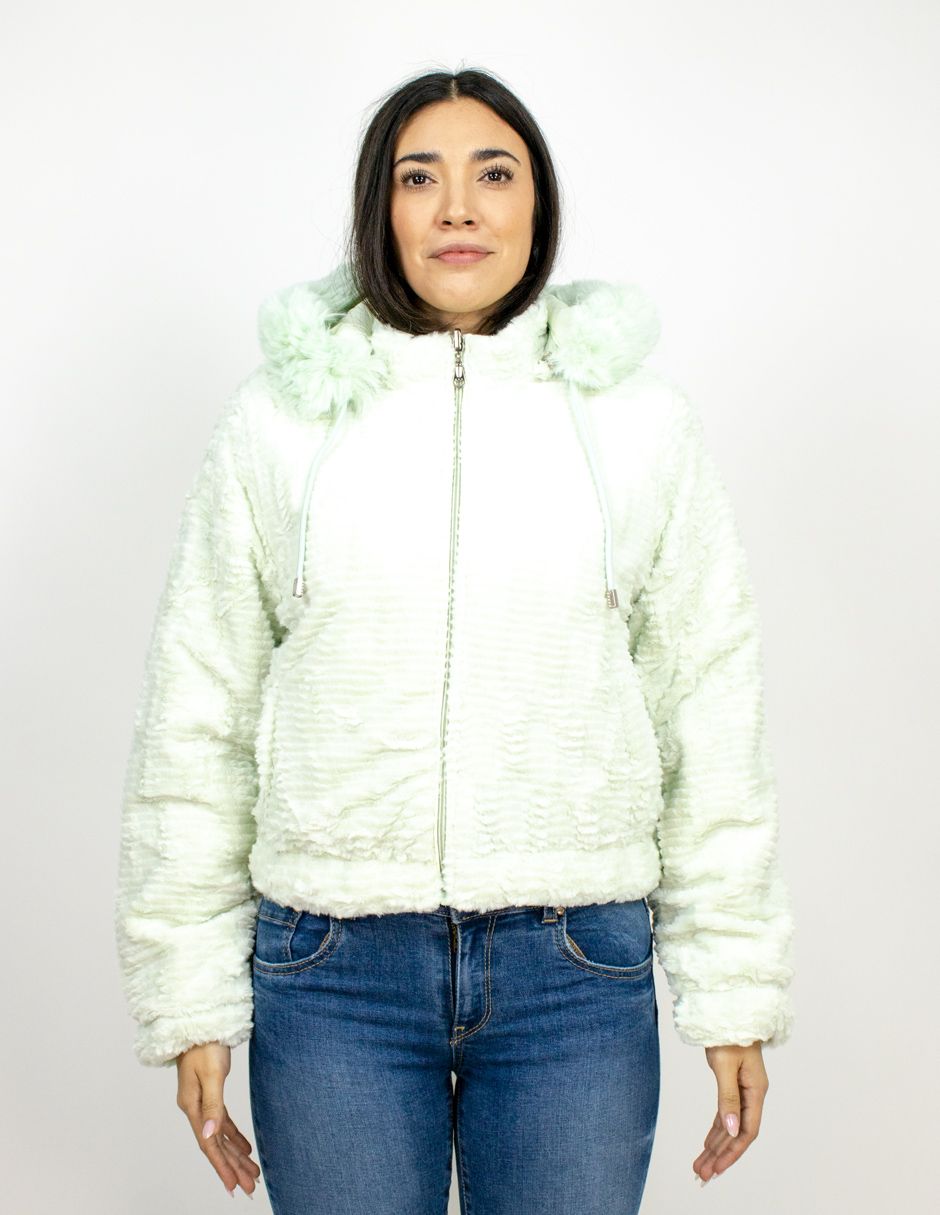 Chamarra Furor Tejido Fluffy Reversible Con Capucha Poliéster/Poliamida Verde Aqua