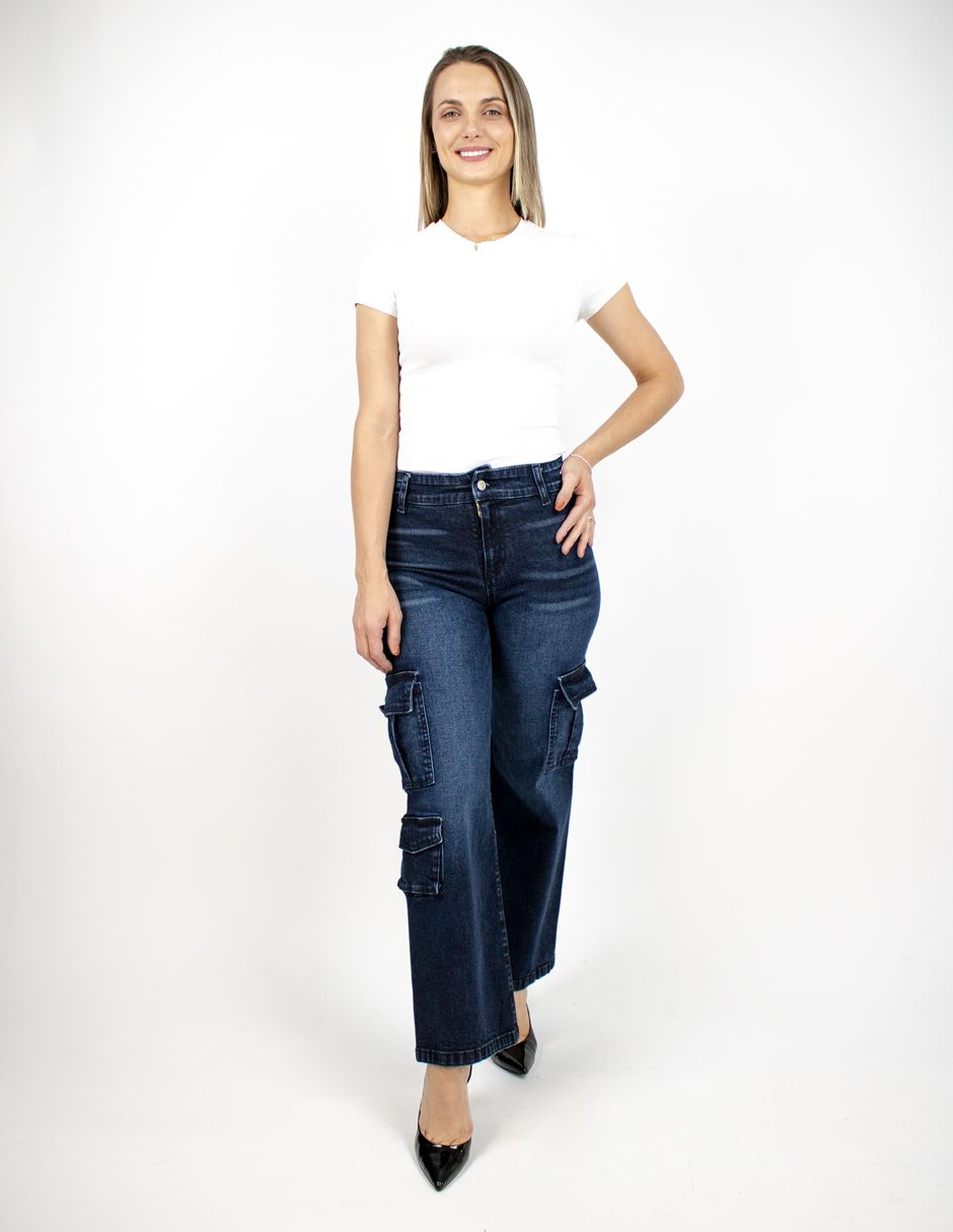 EXCLUSIVO SUBURBIA 2579Jeans Furor Wide Leg Cargo Mezclilla Dark Índigo