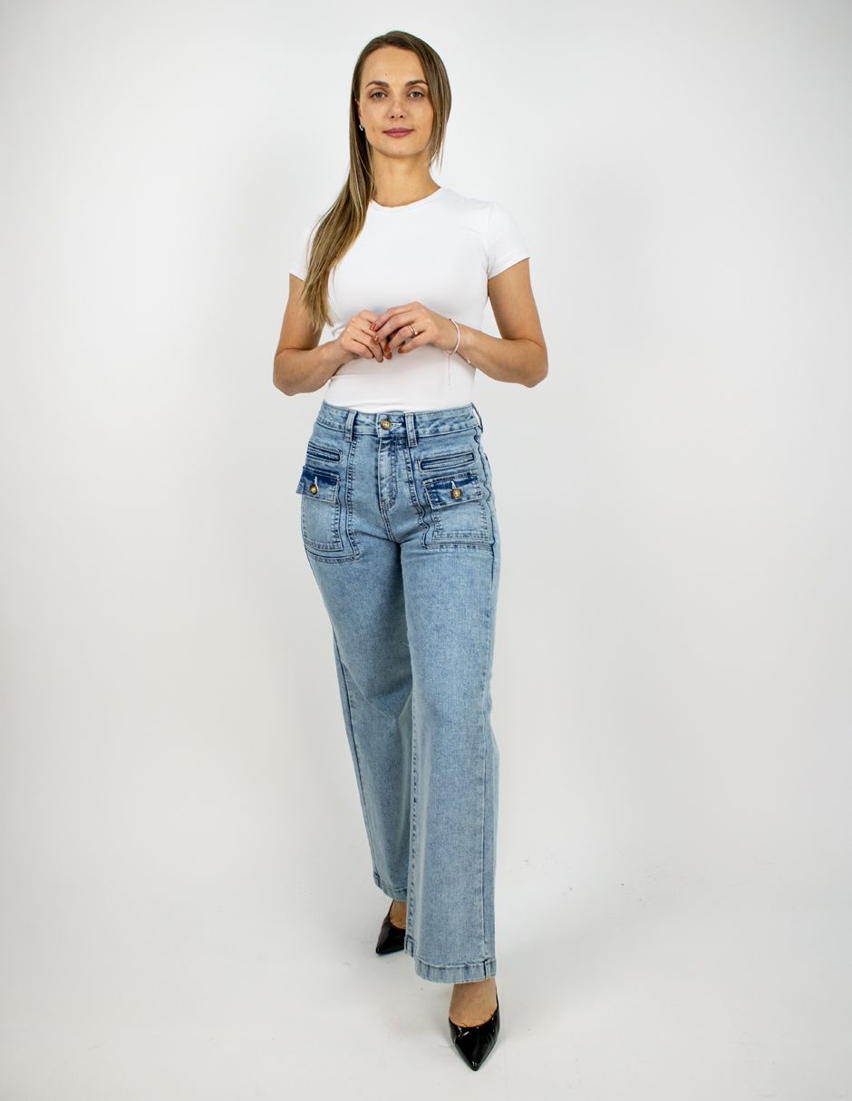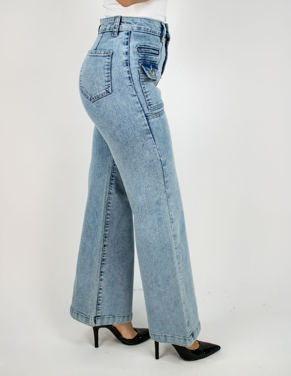 Jeans Furor Mezclilla Wide Leg Fit De Cintura Alta Con Doble Bolsas Sobrepuestas, Trabas Anchas, Pierna Amplia Hasta El Tobillo