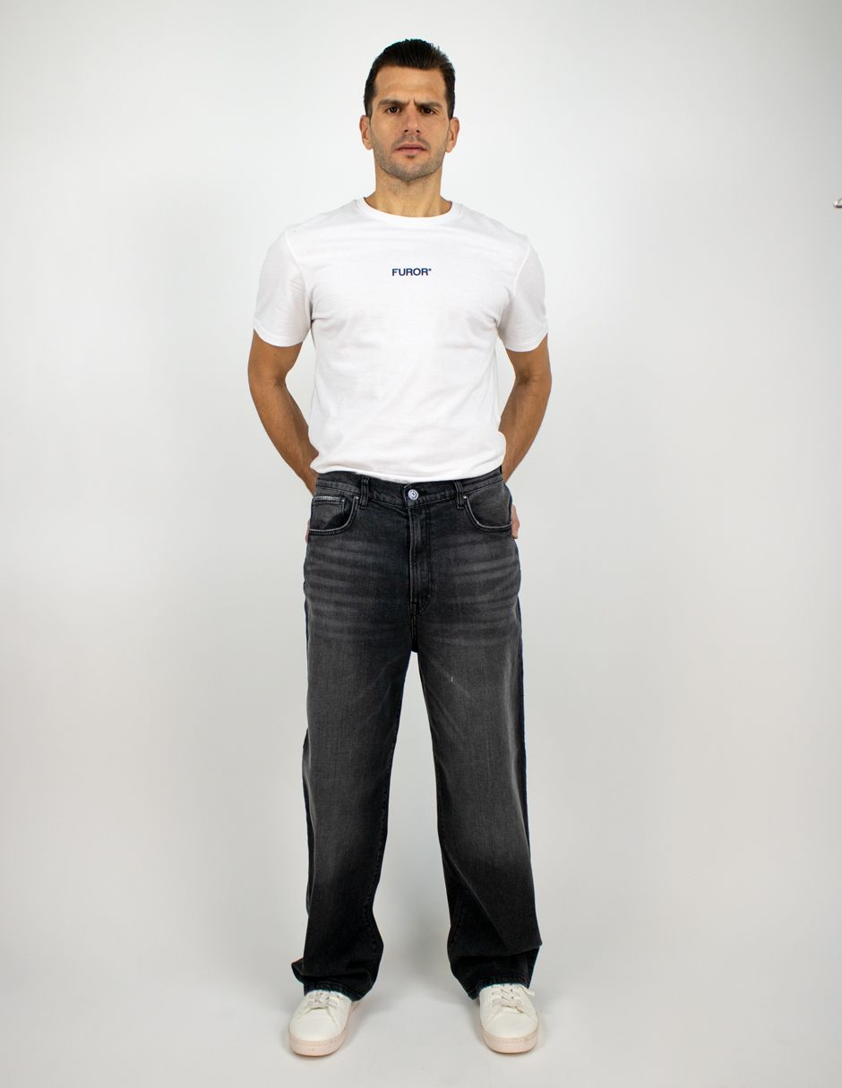 Jeans Furor Mezclilla Baggy Fit con Cintura Alta, Pierna Amplia Hasta El Tobillo