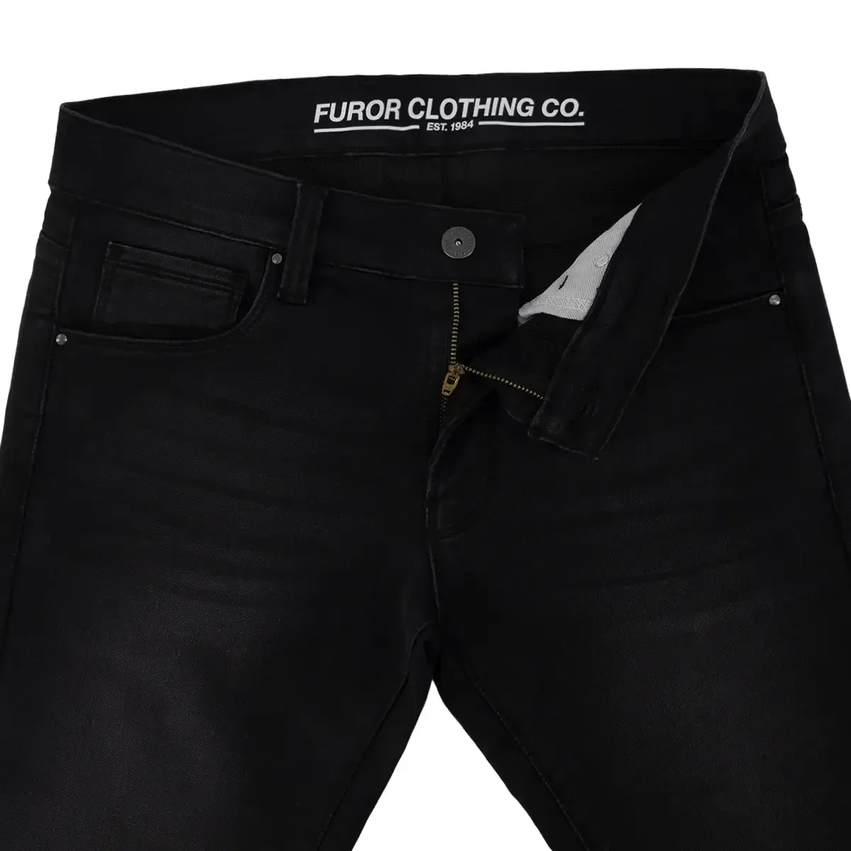 Jeans Furor Justin Black Slim Fit con Cintura Media, Pierna Semi Amplia y Tobillo Semi Justo.