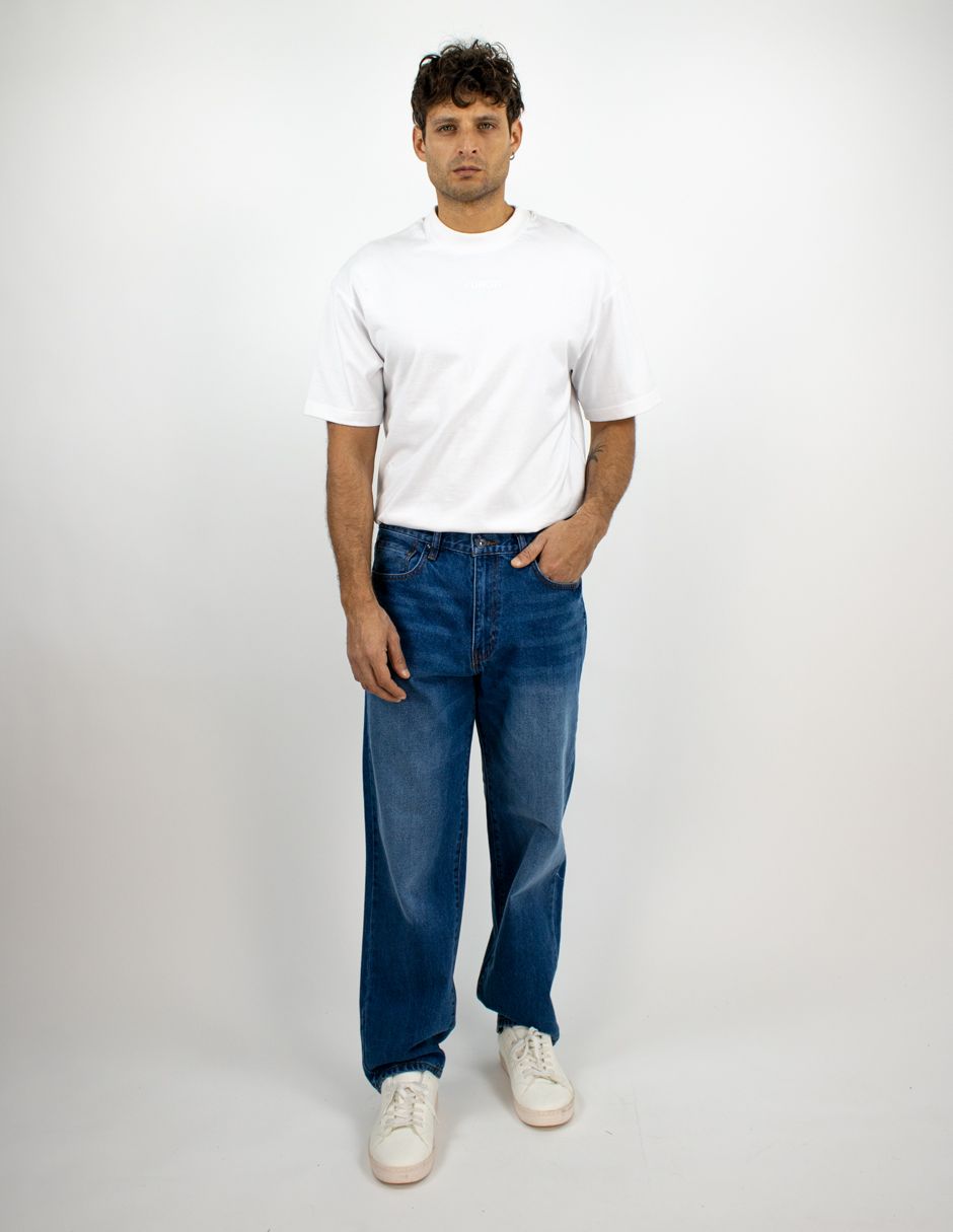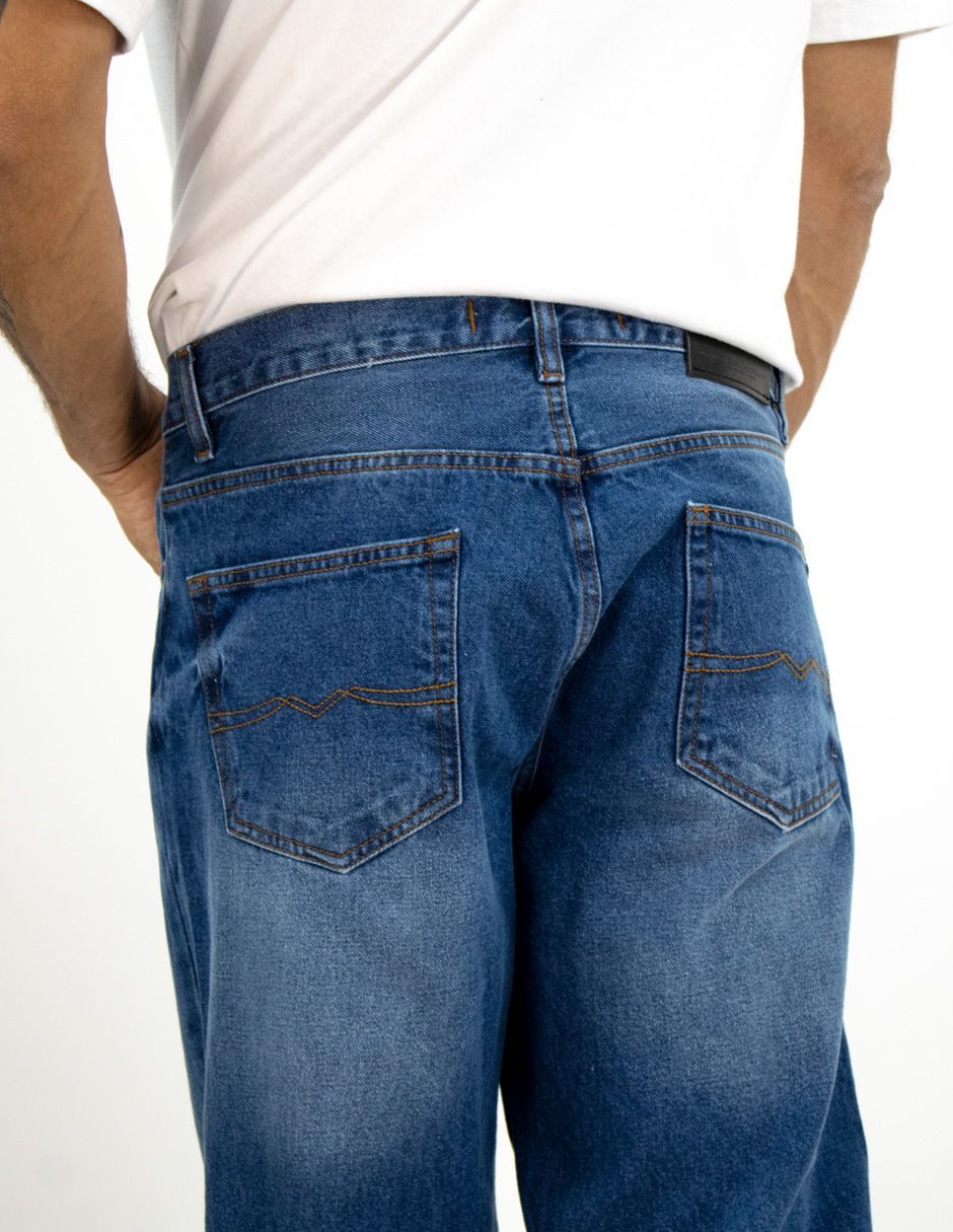 Jeans Furor Mezclilla Loose Fit con Cintura Media, Pierna Amplia Hasta El Tobillo