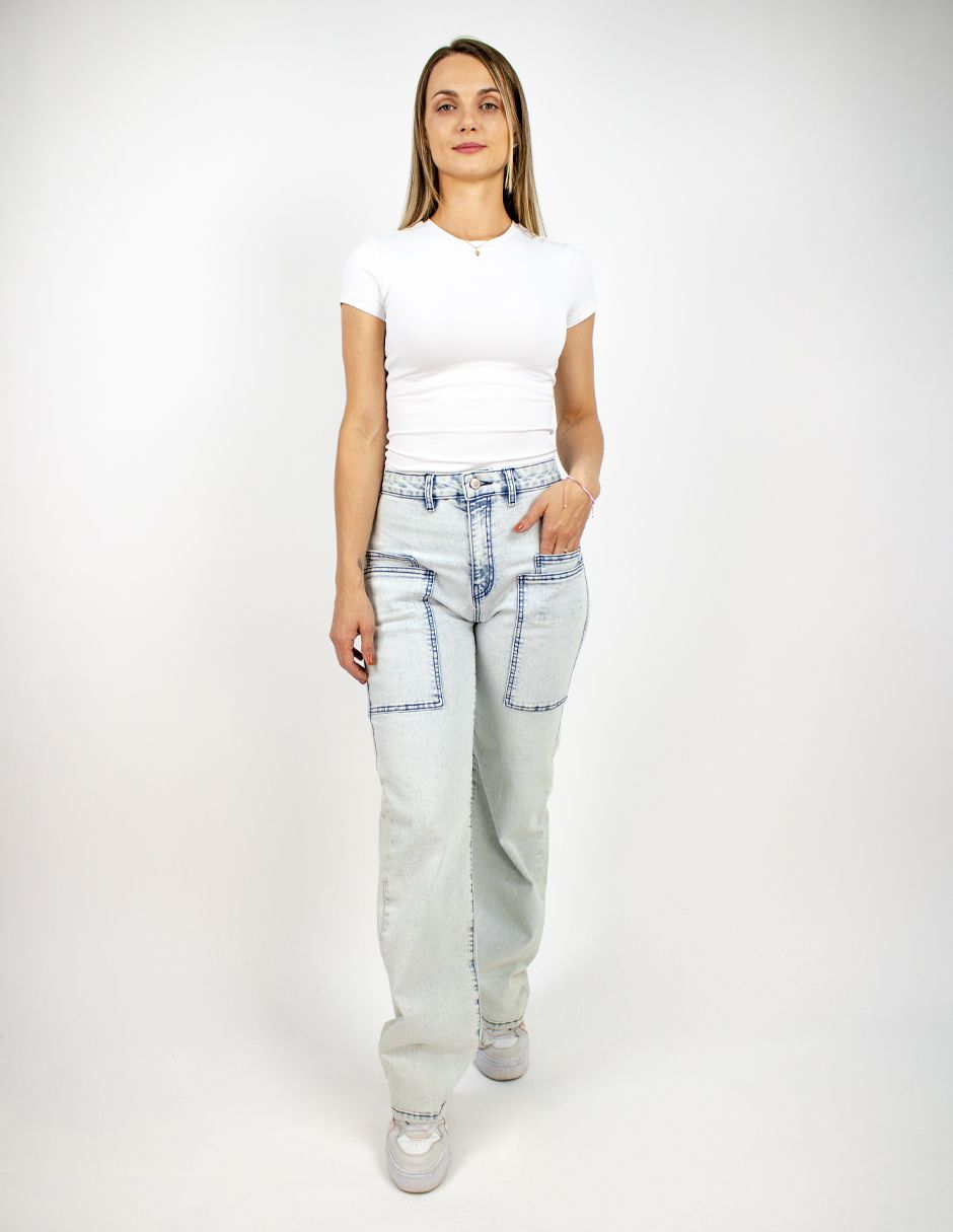 EXCLUSIVO SUBURBIA 2613Jeans Furor Straight Bolsas Sobrepuestas Mezclilla Acid Wash