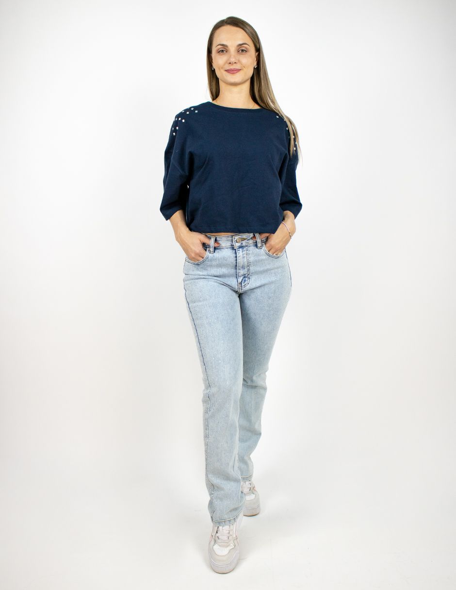 Jeans Furor Mezclilla Straight Fit con Cintura Alta, Pierna Recta Hasta El Tobillo, Push Up