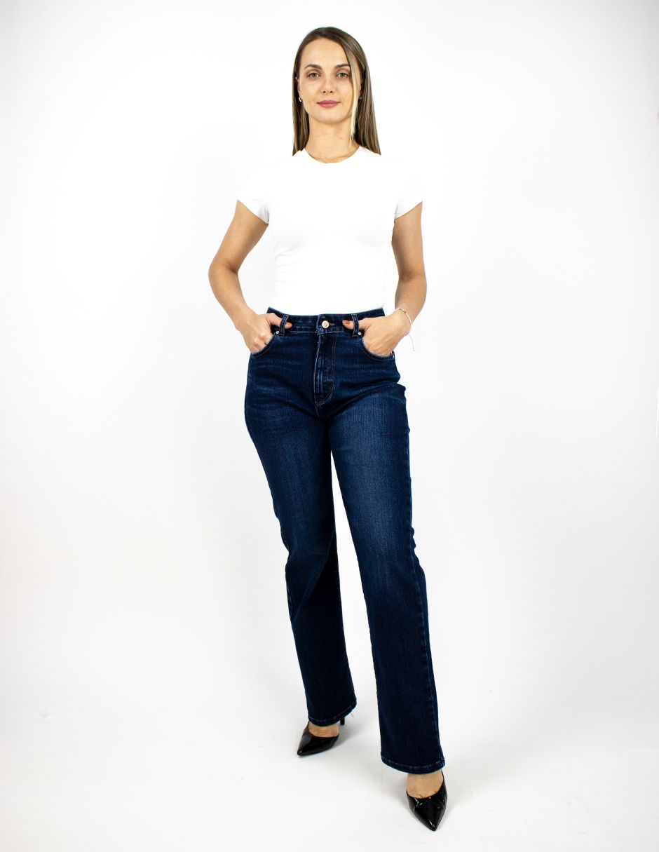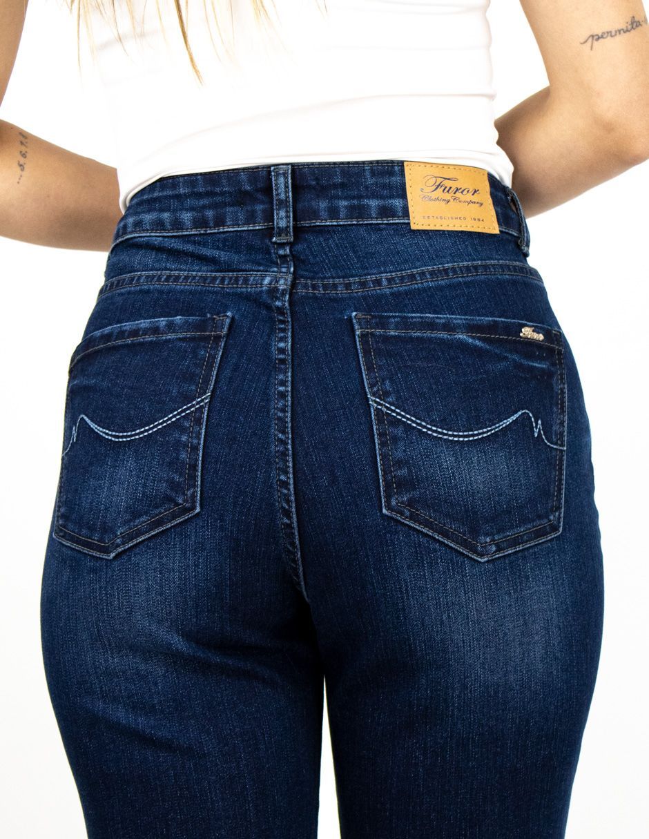 Jeans Furor Mezclilla Straight Fit con Cintura Alta, Pierna Recta Hasta El Tobillo, Push Up