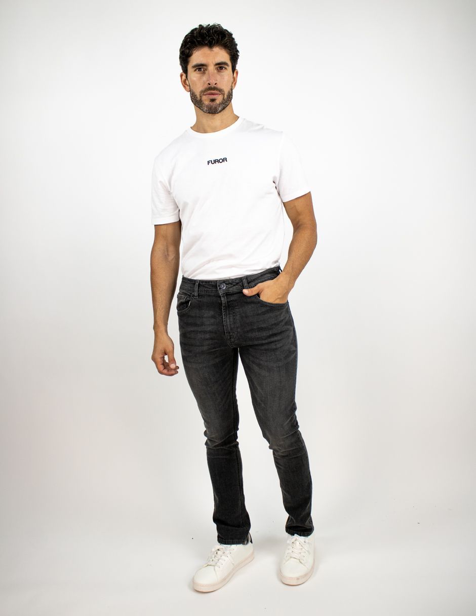 Jeans Furor Mezclilla Straight Fit con Cintura Media, Pierna Recta Hasta El Tobillo