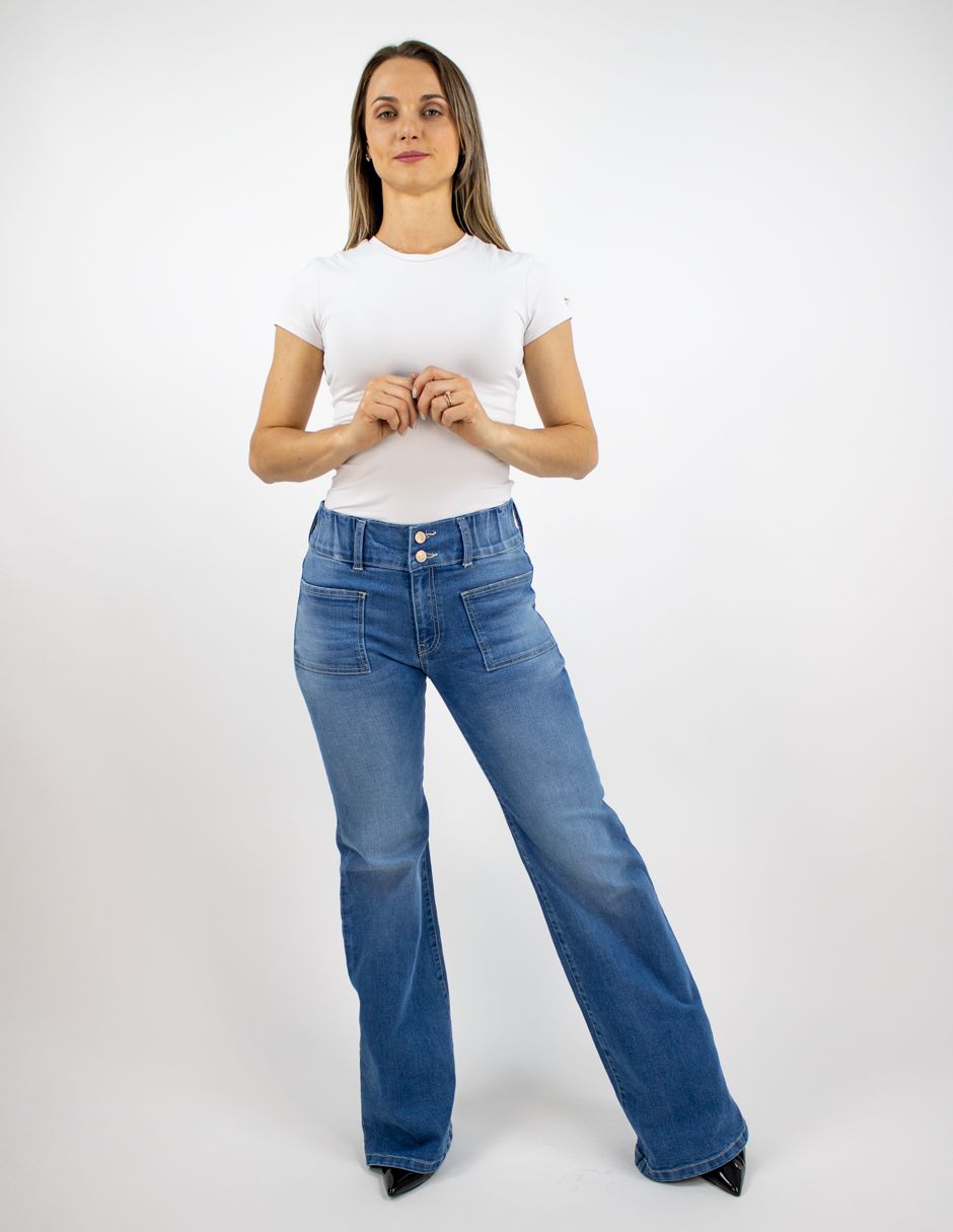 Jeans Furor Mezclilla Wide Leg Fit De Cintura Alta Con Doble Bolsas Sobrepuestas, Trabas Anchas, Pierna Amplia Hasta El Tobillo