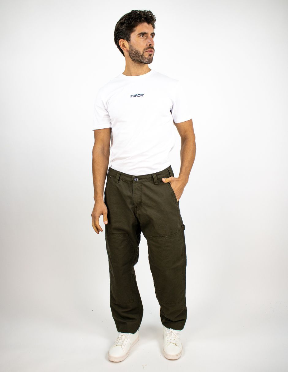 Pantalón Furor Carpenter Gabardina Verde Oscuro Relaxed Fit con Cintura Alta, Pierna Relajada y Tobillo Amplio.
