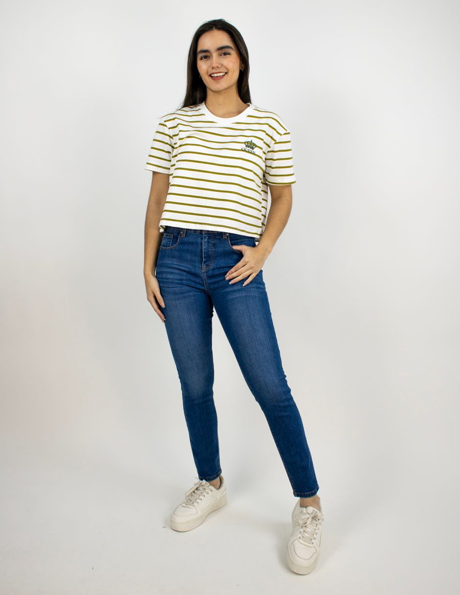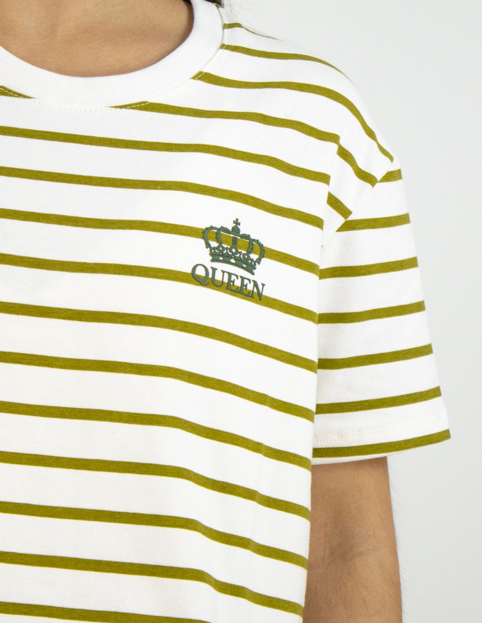 EXCLUSIVO SUBURBIA SAILOR2602 Playera Furor Chifón Crop Blanco Con Rayas Verdes
