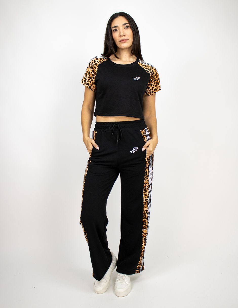 Playera Furor Crop Chifón Manga Raglán Animal Print Con Cinta En Hombros