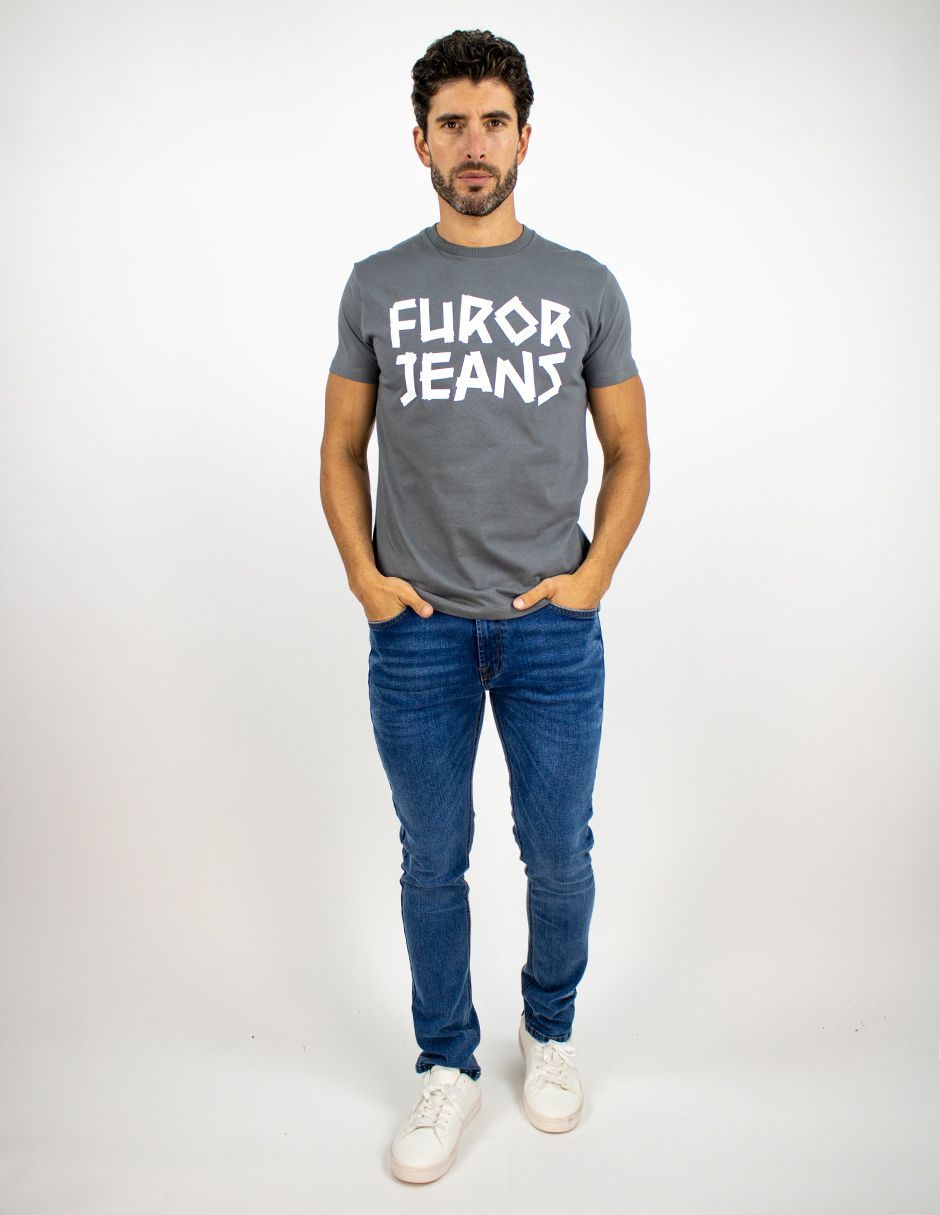 EXCLUSIVO SUBURBIA RETAILG Playera Furor Manga Corta Chifón Slim Gris