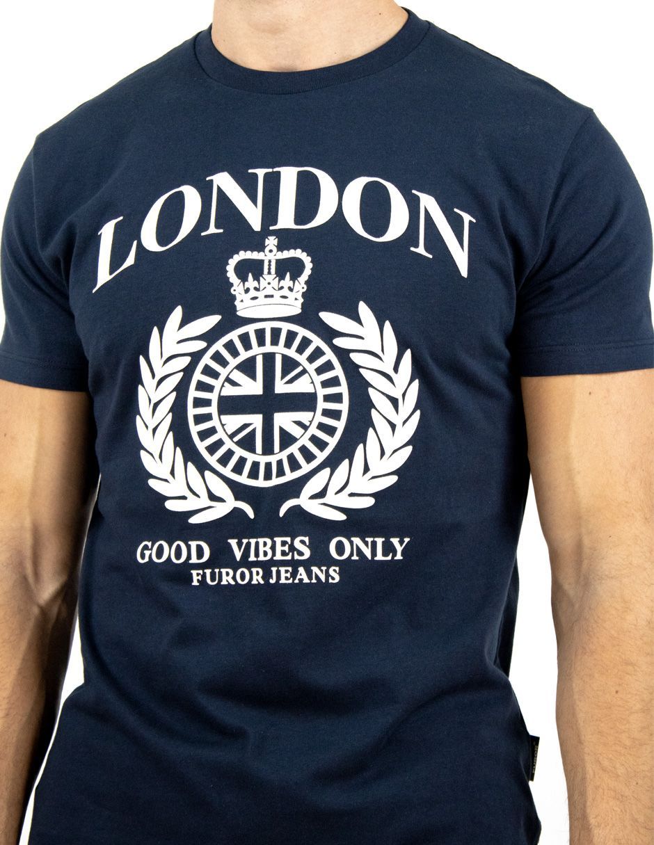 EXCLUSIVO SUBURBIA PRINTEDMARINO Playera Furor Manga Corta Chifón Slim Marino Estampado