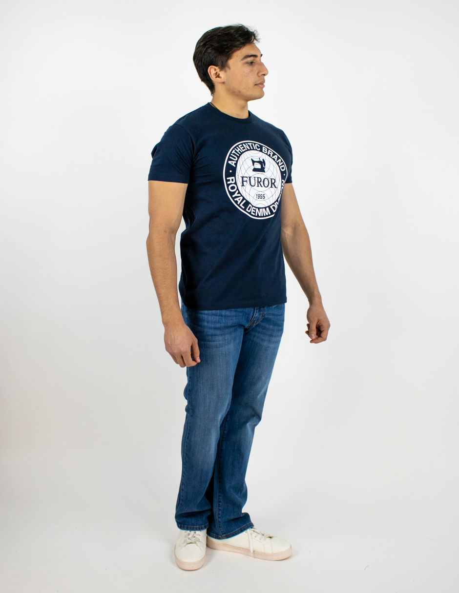 EXCLUSIVO SUBURBIA BUTTON0401MARINO Playera Furor Manga Corta Chifón Slim Marino Estampado