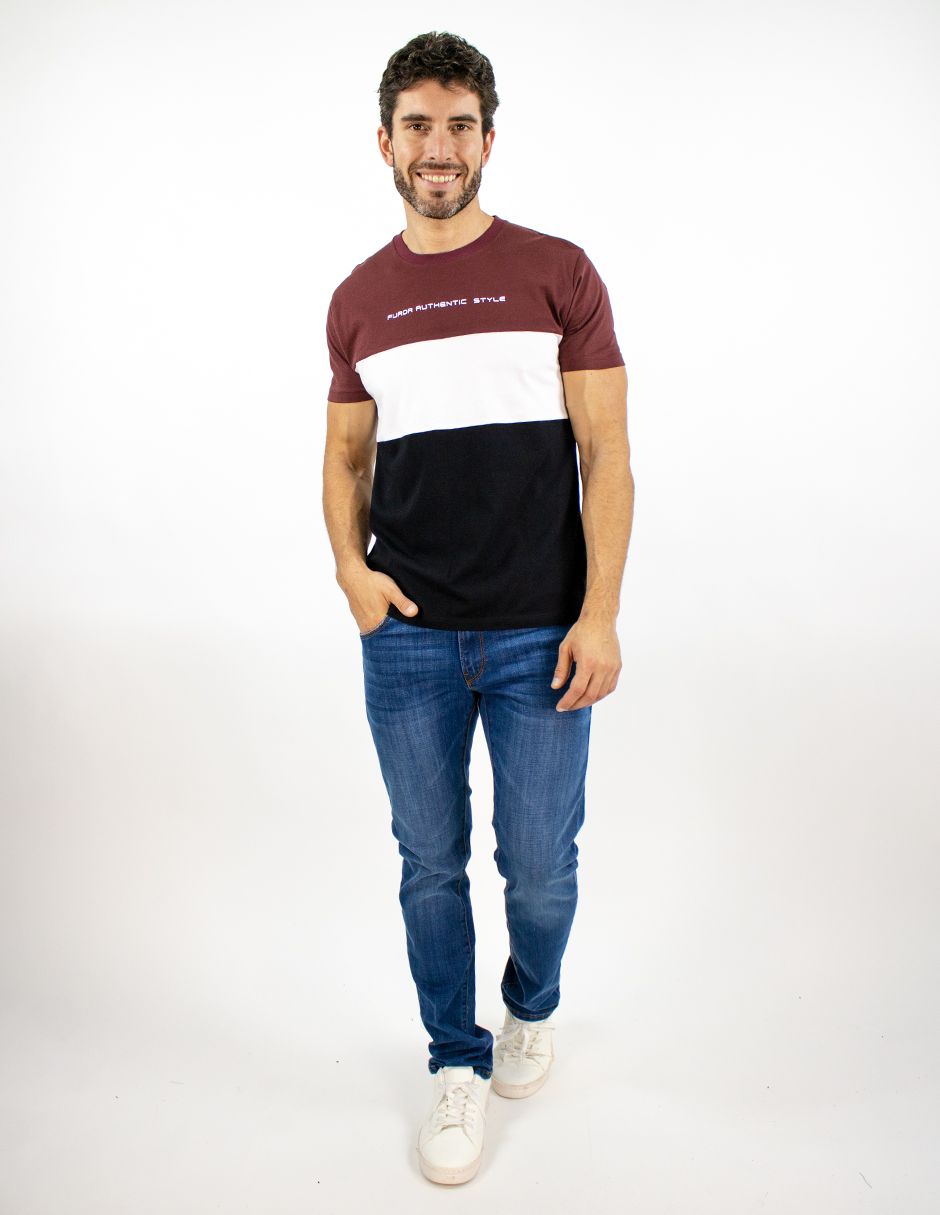 EXCLUSIVO SUBURBIA BLOCKV Playera Furor Manga Corta Chifón Slim Vino Combinado