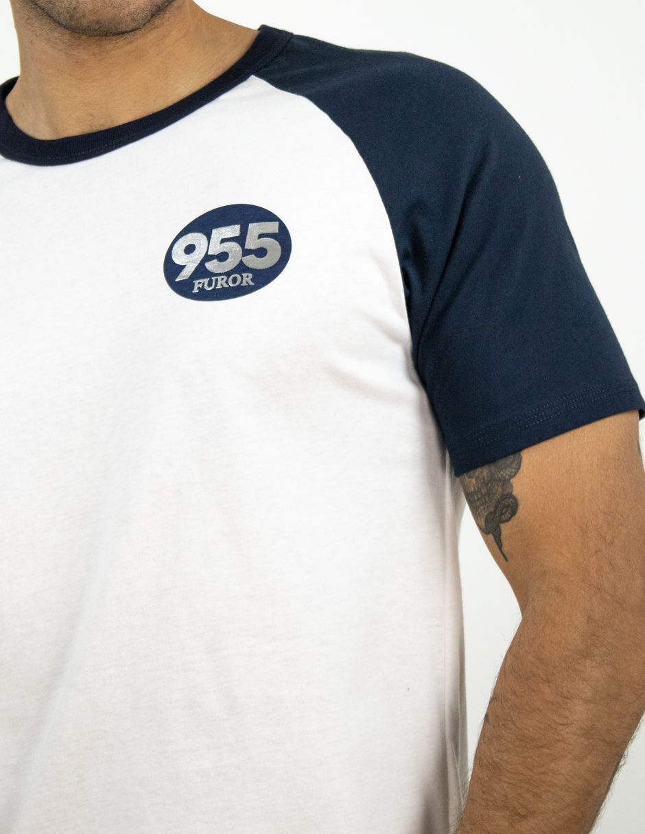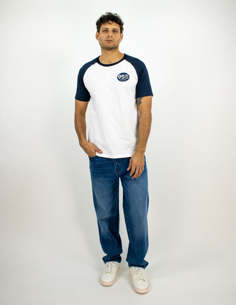 EXCLUSIVO SUBURBIA FIFTY0101BLANCO Playera Furor Manga Ranglán Chifón Slim Blanco Marino Combinado