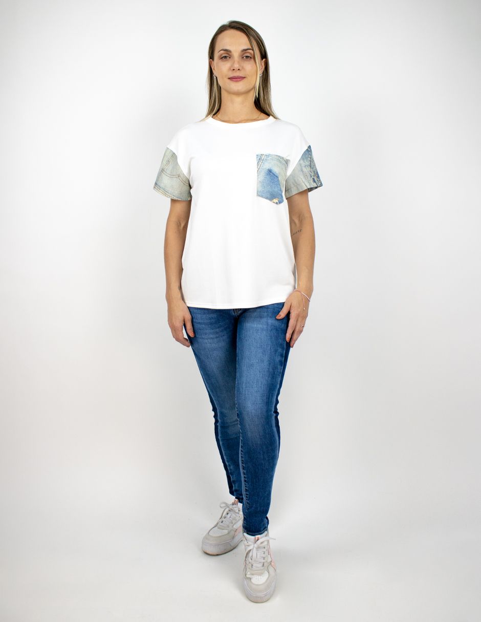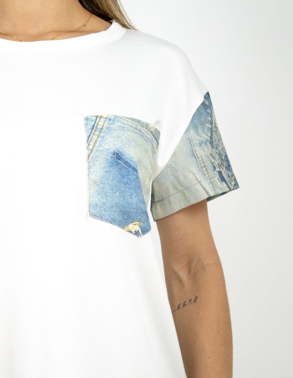 Playera Oversize Mangas Y Bolsillo Sublimados Mezclilla Furor Poliéster