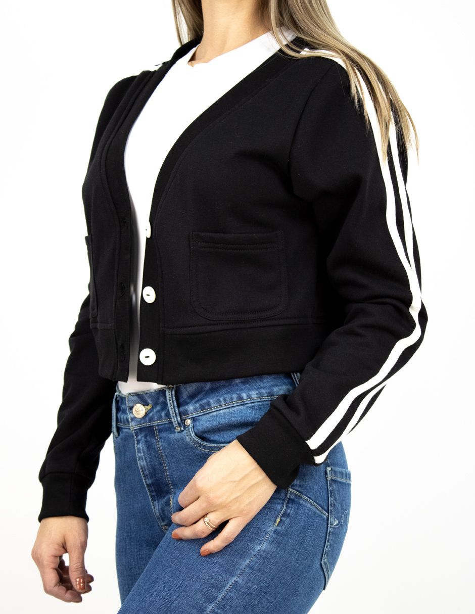 Sudadera Crop Con Cintas en Hombros Y Mangas Con Bolsillos Al Frente