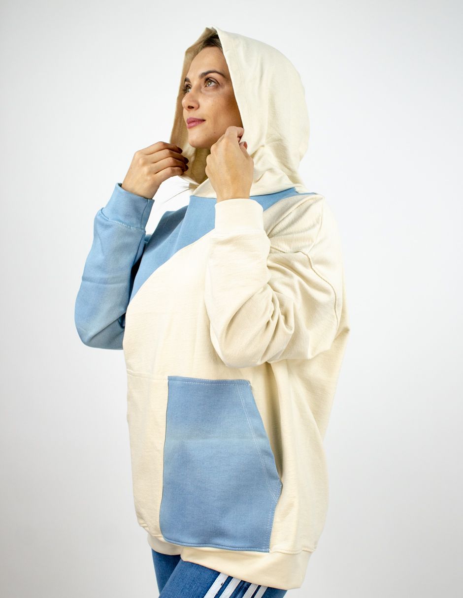 Sudadera Furor Hoodie Oversize Poliester Hueso/Azul