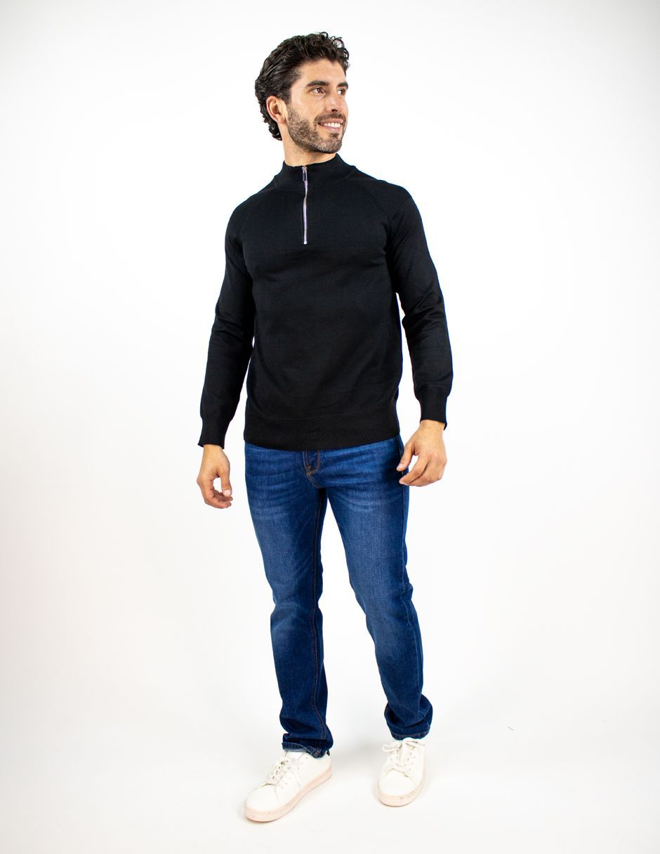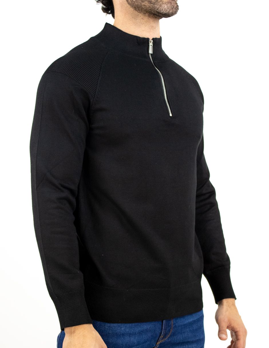 EXCLUSIVO BOUTIQUES T11900139 Suéter Furor Con Medio Zipper Y Cuello Alto Viscosa Poliéster Negro