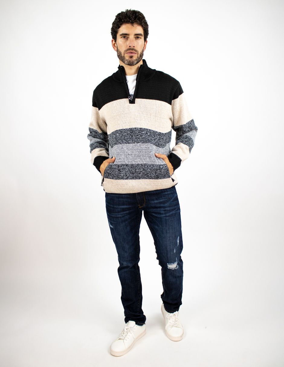 EXCLUSIVO SUBURBIA SFUR255I Suéter Furor Con Zipper Y Cuello Sport Poliéster Ivory Grecas